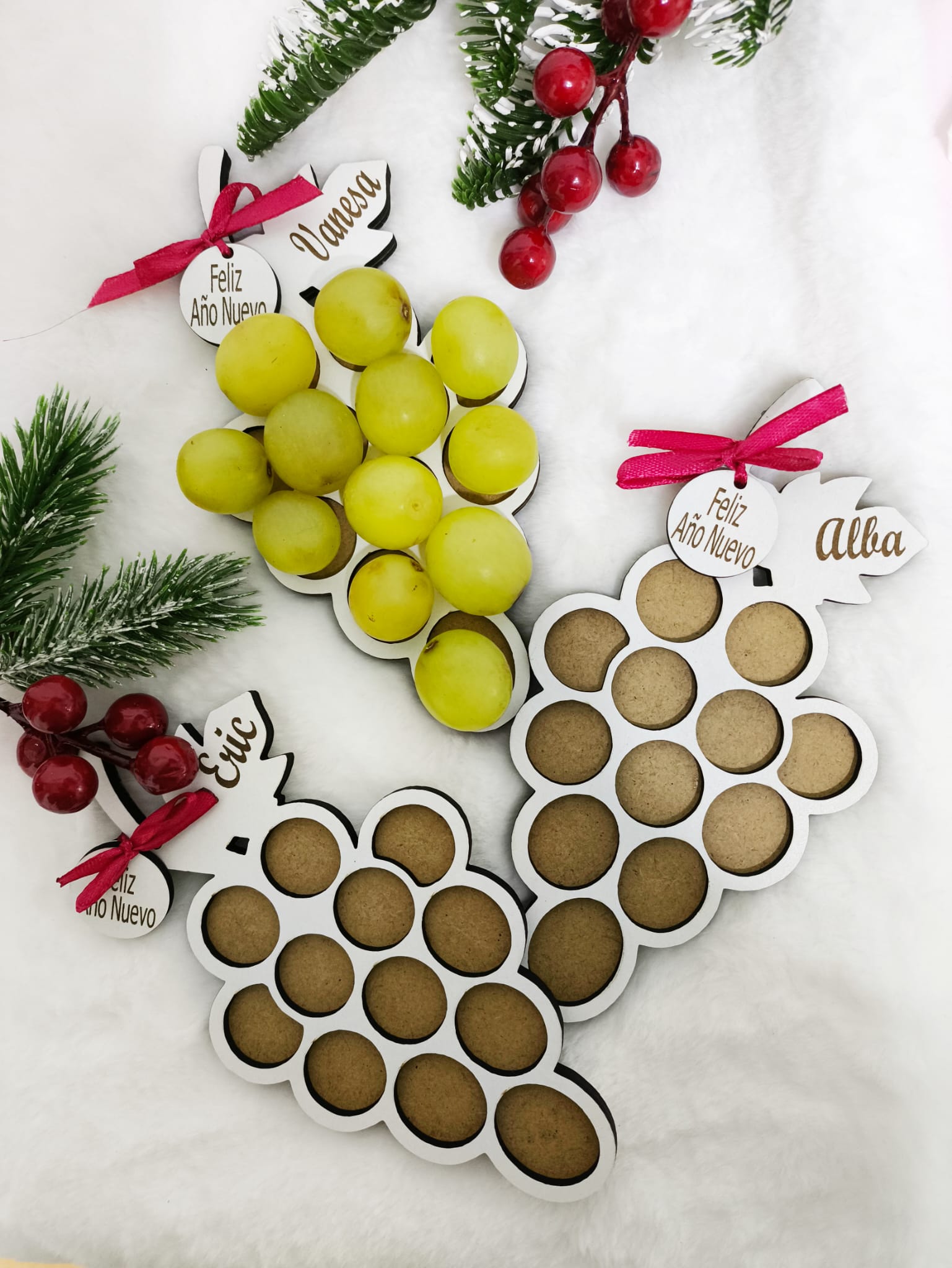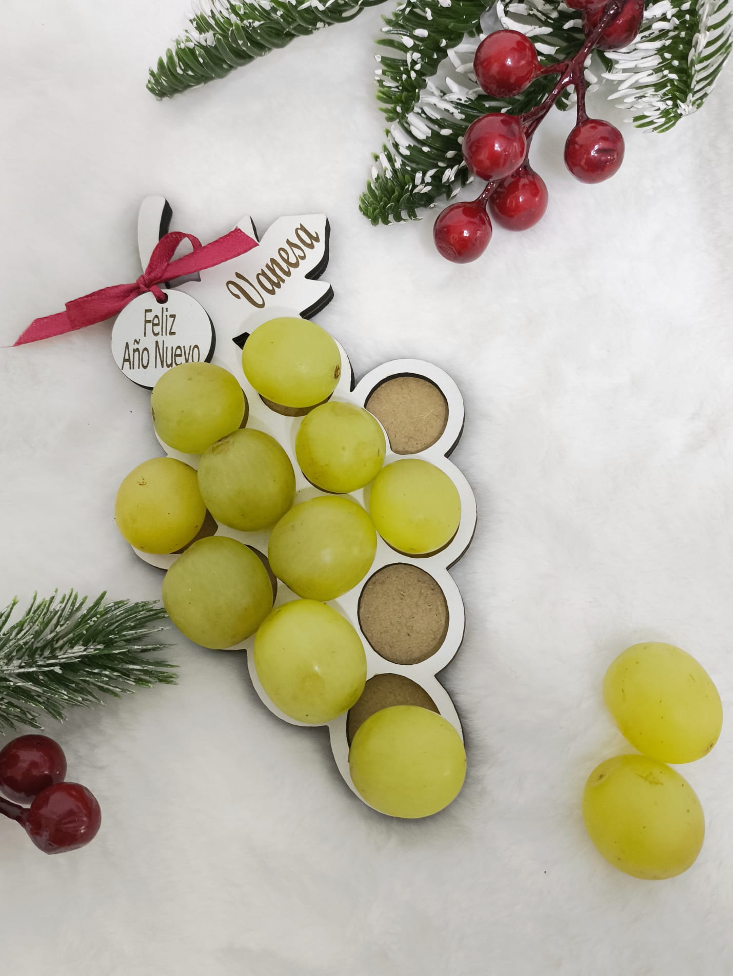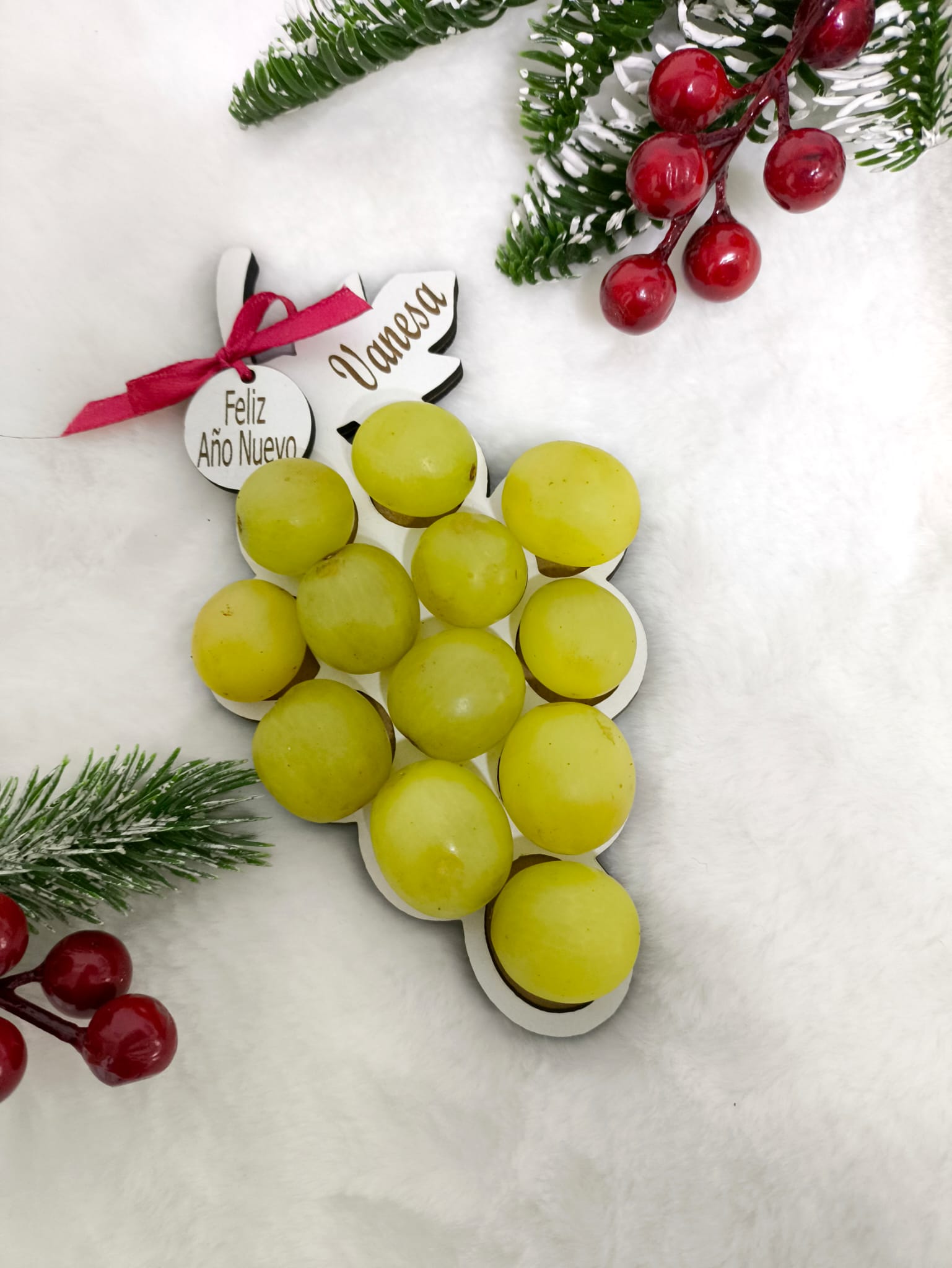Bandeja de uvas de Nochevieja personalizada con nombre. Un detalle artesanal y original para celebrar el Año Nuevo con las 12 uvas.