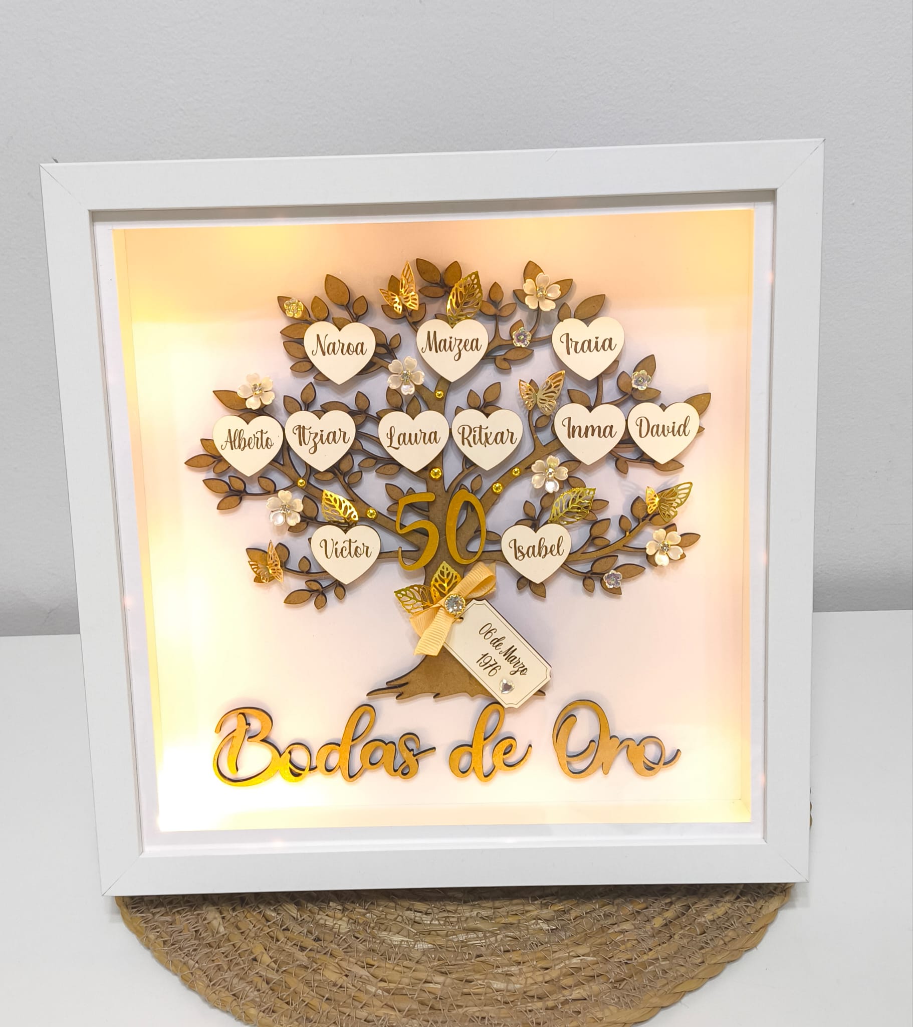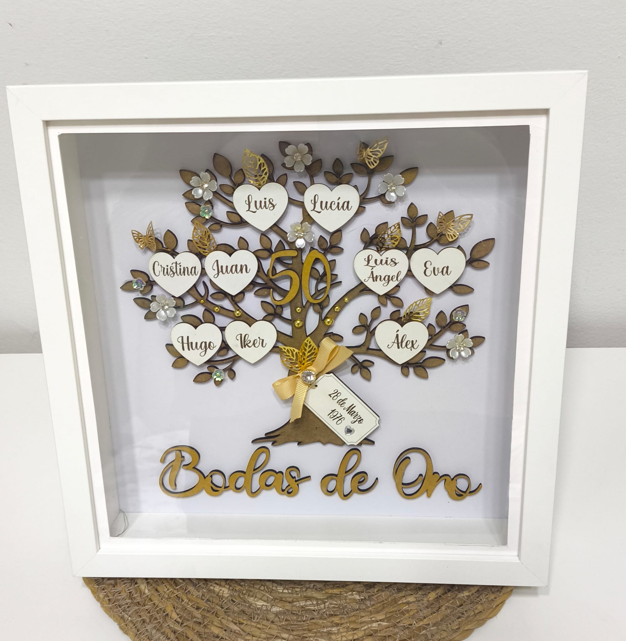 Árbol familiar personalizado con  los nombres de los familiares. Ideal para sorprender a todos como regalo de navidad, cumpleaños, boda, bautizo, comunión, aniversario, bodas de plata, bodas de oro, etc.…